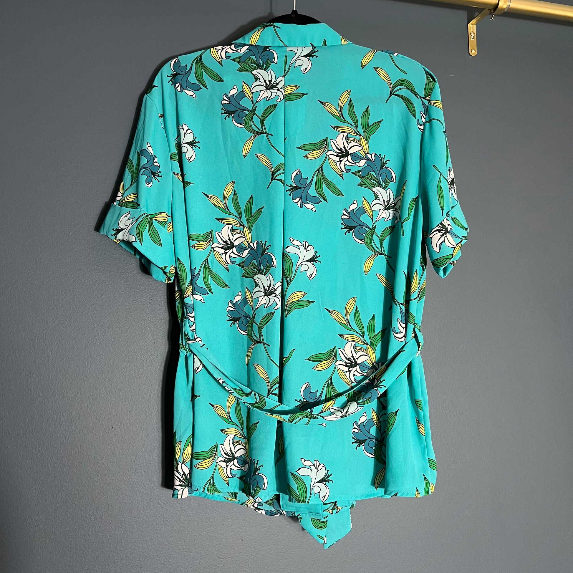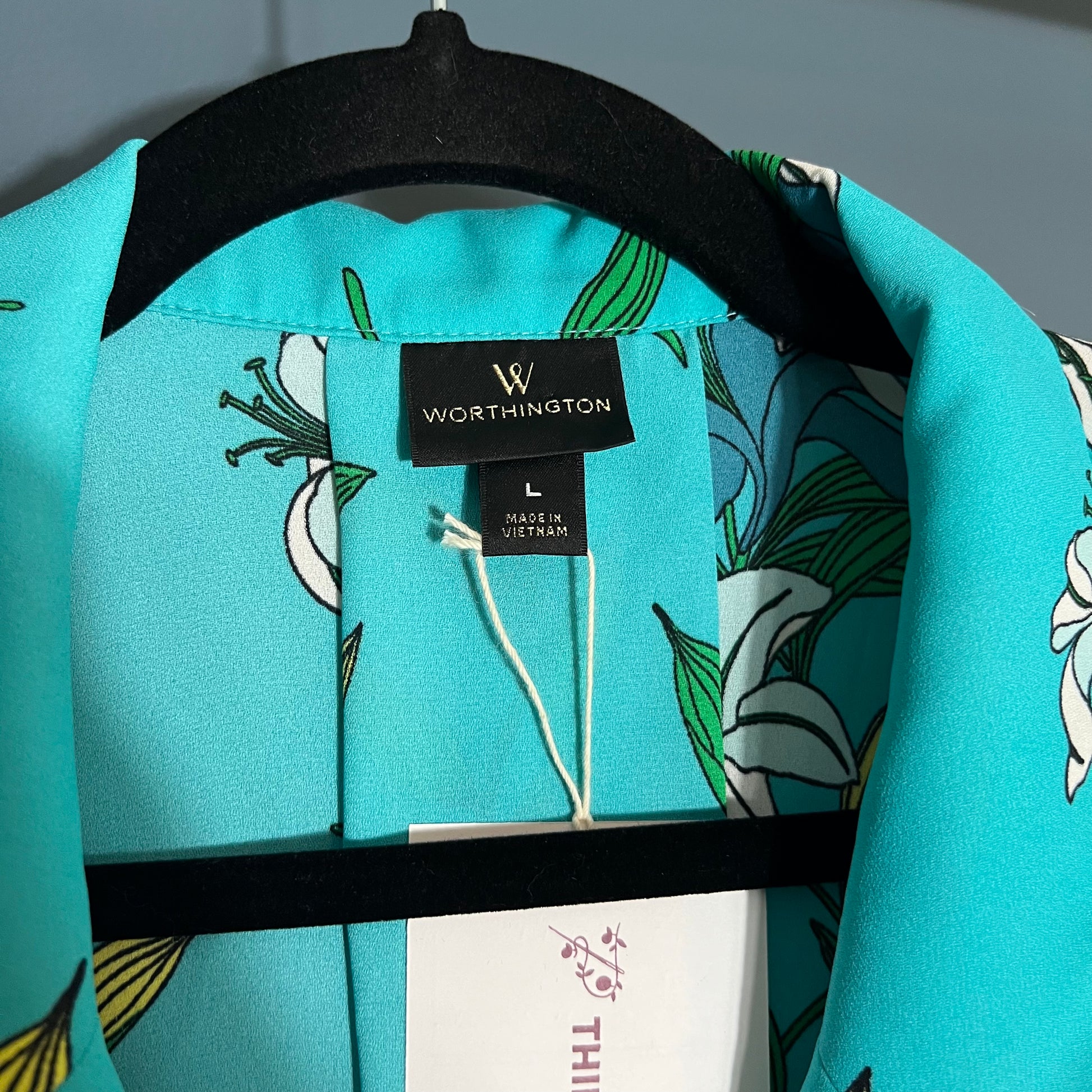 Worthington Blue Floral Button Down Blouse